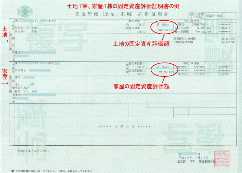 不動産を管轄する都税事務所や市町村役場では、固定資産評価額だけを証明した「固定資産評価証明書」という証明書を発行しているので、この「固定資産評価証明書」の交付を受け、固定資産評価額を調べる方法もあります。 (ただし固定資産評価証明書の交付を受ける方法は少し面倒なので、固定資産評価額を調べる方法としてあまり手軽とはいえません。)